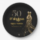 Fifty and Fabulous Gold Dress Black 50th Birthday Paper Plate