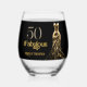 Fifty and Fabulous Gold Dress Black 50th Birthday Stemless Wine Glass