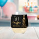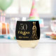 Fifty and Fabulous Gold Dress Black 50th Birthday Stemless Wine Glass that you can personalize for your fiftieth birthday party celebration. This stemless wine glass features a gold and diamond-studded 50 and a sparkling gold gown. The words Fabulous and the name are set using trending bold font typography.