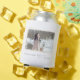 Fifty and Fabulous Customisable Photo and Name Can Cooler. Photo is framed with stylish gold glitter frame. Hand-lettered font in grey. Personalise this can cooler with your photo and name. Custom orders available at byDivineBlissStudio@gmail.com.