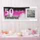 #50 or Fifty and Fabulous! Celebrate with fun black, pink, and white formal, but fun banner. Pale pink daisy with faux sparkle centre stands out against the soft hombre background. Pink and white star accents twinkle in the background of this original graphic design. White text 50 with purple and black cursive typography “fabulous”. Personalise the event with the Birthday girl’s name and photo