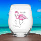 Fifty and Fabulous Pink Flamingo Custom Stemless Wine Glass