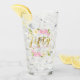 Elegant glass for a special lady that turned 50! This typography design features a faux gold font in hand lettered script that says "Fifty" with pink fonts following "& FABULOUS." There are hand painted watercolor flowers (camellia and magnolia) in pink and cream around the texts.
