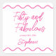 Fifty and Fabulous Pink Script square stickers. A modern 50th birthday invitation that you can personalise and send out for your fiftieth birthday party celebration. The words "Fifty and Fabulous" are set using trending font typography. The elegant text colours can be changed using the edit menu.