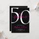 Fifty and Fabulous script, minimal black, pink and white modern 50th birthday invitation that you can personalize and send out for your fiftieth birthday party celebration. The "50 and Fabulous" is set using popular script font typography. The text colors can be changed using the edit menu.
