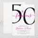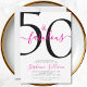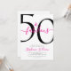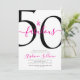 Fifty and Fabulous script, minimal pink and black modern 50th birthday invitation that you can personalize and send out for your fiftieth birthday party celebration. The "50 and Fabulous" is set using popular script font typography. The text colors can be changed using the edit menu.