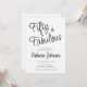 Fifty and Fabulous script minimal white and black modern 50th birthday invitation that you can personalize and send out for your fiftieth birthday party celebration. The words "Fifty and Fabulous" are set using popular script font typography. The text colors can be changed using the edit menu.
