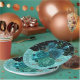 Beautiful 50th birthday paper plates, featuring a teal (turquoise) floral rose theme. This design could be used for other birthdays as well. We offer matching party paper napkins and other fabulous 50th birthday party supplies.