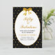 Fifty and fabulous with golden star pattern on black and white Party Invitation.