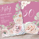 Fifty Birthday pink watercolor floral white text Invitation