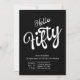 Celebrate your 50th birthday in modern, sophisticated style with our black and white themed Hello Fifty birthday invitations! This exclusive design features a bold black and white theme, with a modern font that reads "Hello Fifty," to commemorate the milestone event. The high-quality paper is perfect for any special occasion, and it will give your invitation a timeless look and feel. Perfect for a night full of memories and laughter with friends and family.