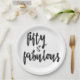 NewParkLane - Paper Plates, with fun quote 'Fifty & Fabulous' in a trendy, black. script typography, against a white background.
