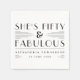 This classy 50th birthday napkin features beautiful black Art Deco typography that says 'she's fifty & fabulous' on a white background. Add your name and the date below. You can edit all elements including fonts, colours and placement in the Zazzle design tool. For more 'fifty and fabulous' invitations, visit my store Zazzle.com/EventsByJessicaAmber ••• For custom orders, message me on Zazzle