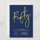 Fifty | Gold & Blue Modern 50th Birthday Party Invitation