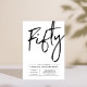 Celebrate your special day with this simple stylish 50th birthday party invitation. This design features a brush script "Fifty" with a clean layout in black & white colour combo. More designs available at my shop BaraBomDesign.