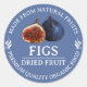 The label features a vibrant and appetising design with illustrations of juicy figs capturing the essence of your delicious dried fruit. The use of warm colours like peach, white, and purple emphasizes the natural and fresh qualities of your product.