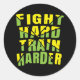 Fight hard train harder classic round sticker