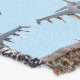 A quality printed throw has its advantages. This is a much finer weave throw than its loopier cousins, and though lighter, it is worth the investment for custom room accessorizing. The back is much prettier than the typical brown, and the fringe on the long sides very vivid, the selvage nicely done. Before photographing, I washed the throw in cold water, delicate, with a thicker woven throw the same size. On tumble dry low, this throw was dry in half the time as the other. This is a very practical quality if you use throws for furniture covers or to wrap up in frequently. The sleekness of the fabric makes it a great layer for accenting or protecting without the feeling of sitting on too much stuff. Perfect for napping or when you feel a light chill coming on. The color printing is beautiful and on this fabric, matched the design and color of my Photoshop image. This is an advantage for blending room fabrics and colors. The fringe on the short sides prints the colors from the design image and therefore varies from the side fringe. I streaked a white fractal line through the plaid pattern to give the illusion of weaving. This printed as crisp as an illusory thread, and put some white in the short side fringe, showing another advantage of print vs loomed- for artistic purposes, line lines, detail, and color integrity can be planned and preserved. My loomed throws have color limitations and more of a needlepoint texture. Print throws reproduce an exact image. The throw felt a little stiff straight out of the package, but this went away in the first delicate wash. Of course I searched the wash water for ink or bleeding and there was none.