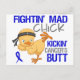 Show the world that you're not going down without a fight with our funny Fightin' Mad Chick rectal cancer shirts, apparel, gifts, and merchandise featuring a cute cartoon chick ready to kick butt and a grunge-style awareness ribbon.