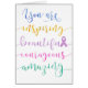 Remind someone fighting cancer to remember who she is with this unique calligraphy style typography design, featuring this message in colourful watercolor style: "You are inspiring, beautiful, courageous, amazing." The "L" in the word beautiful is a lavender cancer ribbon (Symbolising all cancers).