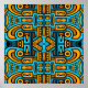 blue and orange pattern, in the style of Mayan art, tech-inspired