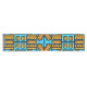 blue and orange pattern, in the style of Mayan art, tech-inspired