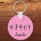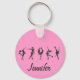 Figure Skaters, Pink, Grey Pattern - Pink Background- Personalise Key Chain with Name.