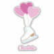 The design shows three pink heart-shaped balloons and a white figure skating boot.
