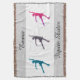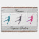 Girl's Figure Skater Throw Blanket Personalised w/ Her Name. Silver faux glitter sparkle with 3 different coloured figure skaters in the centre.