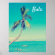 Travel print theme with blue sky and Coconut palm trees from a photograph taken in Fiji. Tropical Island getaway theme. Summer holiday vibe. Retro vintage colors for a vintage tropical holiday theme with Bula local language greeting.