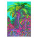 Palm trees and a variety of ferns and other plants in bright colours with a turquoise background. Inspired by Haeckel's "Kunstformen der Natur".