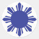 Filipino Sun. This is the sun with rays that you would see on the Philippine flag with the three stars. The design is offered in black, white, red, blue and yellow. You can customise them to fit your wants and needs.