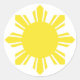 Filipino Sun. This is the sun with rays that you would see on the Philippine flag with the three stars. The design is offered in black, white, red, blue and yellow. You can customise them to fit your wants and needs.