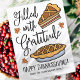 Add a Thanksgiving greeting from your family. Design is composed of pumpkin pie illustrations.