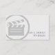 In this film director photography business card, a big bold translucent black icon of a clapperboard sits on the left side of the card. The background is a soothing off-white paper texture, with your name and title appearing in simple easy to read black letters on the lower right. Your other contact details appear on the back of the card. Perfect for music, musician, performing arts, music related, professional themes.