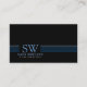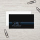 This film director business card features a jet black background with your monogram letters appearing on the lower left side of the card. Flanking the monogram letters on either side are gradient blue stripes that extend all the way to the edges of the card. Below the monogram letters appear your name and below that, your title. Designed for elegant, chic, abstract, modern, minimal, photography, imaging, film, video, artistic, arts themes.