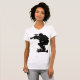 White v neck low cut womens tshirt with a black silhouette of a film maker shooting a movie on a large studio camera on the front. This edgy black and white tshirt is perfect for any film student or film enthusiast with a sense of style.