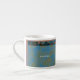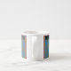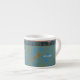 The original artwork by ZoeSPEAK on this Espresso Cup was created from a scan of a strip of 35mm film. The background colours are muted sky blues and rusts. The film strip colours are muted aqua blues and golden browns. The top of the film strip, where it folds over, is black with aqua blue highlights. The line of white text, which reads "studio", is set to personalise, use as is, or delete.