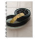 Against a white background, a reel of film sits with a couple of yellow, admit one, movie tickets. This notebook is fully customisable.