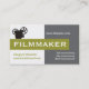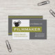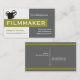 Filmmaker grey, white, olive green eye-catching business card featuring a vitage 35 mm movie style camera in black on white, grey background and an olive green band with the text "FILMMAKER". A great professional business card template for the film maker, director, movie maker, film producer, cinematographer, videographer, video producer, camera operator or cameraman.