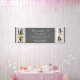 Create a personalised welcome banner for your graduate's open house with this Grey Filmstrip Four Photo Collage Graduation Party Welcome Banner. Banner design features a filmstrip and four photo placements, graduation cap adornments with an elegant script and typography. Personalise with the graduate's name, photos, school and graduation year. Additional party decor available with this design as well.
