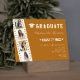 Invite guests to your child's graduation party with this modern Orange Filmstrip Four Photo Collage Graduation Open House Invitation. Invitation design features a filmstrip and four photo placements, graduation cap adornments with an elegant script and typography. Add photos and open house details to customise. Background colour on back side of invite may be changed to complement the photo or to add your school colour.