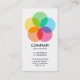 A clear stylish and attractive business card template with a geometric abstract motif made up of five overlapping semi-transparent circles in five different colours arranged around a centre point.. Main company details on the front, with name and personal contact details on the back, with the same motif and style.