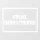 This "Final Reductions" Window Cling Graphic is bold enough to announce your business is having a sale. Shop sale notice. White on clear background.