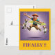 This scene depicts a man in his mid 60s and his two dogs jumping up happily for his retirement. He waited so long for this to happen. It is time to celebrate for a new stage in life. Customisable postcard to congratulate your best friend.