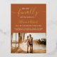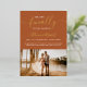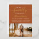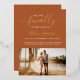 Finally getting married, save the date script simple chic photo on boho terracotta with accents of real gold foil.