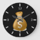 Wall Clock, 25.4 cm Round Black Wooden Frame