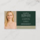 Luxury green and gold photo business card designed for financial advisors and wealth professionals who want a confident, trustworthy, and growth-focused brand presence. Features a clean professional layout with space for a photo to build recognition and credibility. Ideal for client meetings, consultations, networking events, and referrals. Fully editable text and photo with a polished, print-ready design.