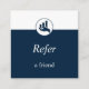 Financial planner refer a friend square business card is a branded promotional card useful to any entrepreneur to gain referrals. Replace the logo, define the condition, and the rewards once fulfilled. Customise the name and contact details. Then adjust what the referrer and referral will receive and label the custom fields. Further customisation of font, font size, font colour, and colour of background and shapes are possible. Should you require assistance or want to discuss a custom design, contact https://t.me/KBMD3signs_chat.