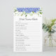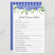 This Find Someone Who game sheet will bring a lot of fun and laughter to your event! It will cause your guests to get up and get to know one another as they try to find someone to fit into each of the categories. This game is no simple task and your guests will have a blast playing it! You'll be shocked at what you learn about one another. The page is beautiful with multi-hued blue hydrangeas, natural greenery, and matching blue striped back.